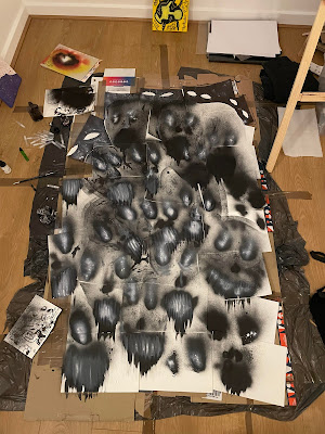 Creating my major project, I decided to make a second piece using ink. During my progress, I didn't struggle with the process during the first steps. However, finalising this work troubled me a lot. At the beginning, I planned to create a piece placed on watercolour sheets, but I didn't consider how I would present it and I must place it on another surface. In this case I decided to take an MDF from the workshop and glue the watercolour sheets. I have tried every possible way, but I came off from the MDF. To stick watercolour sheets, I used many types of glue, such as tape and spray.